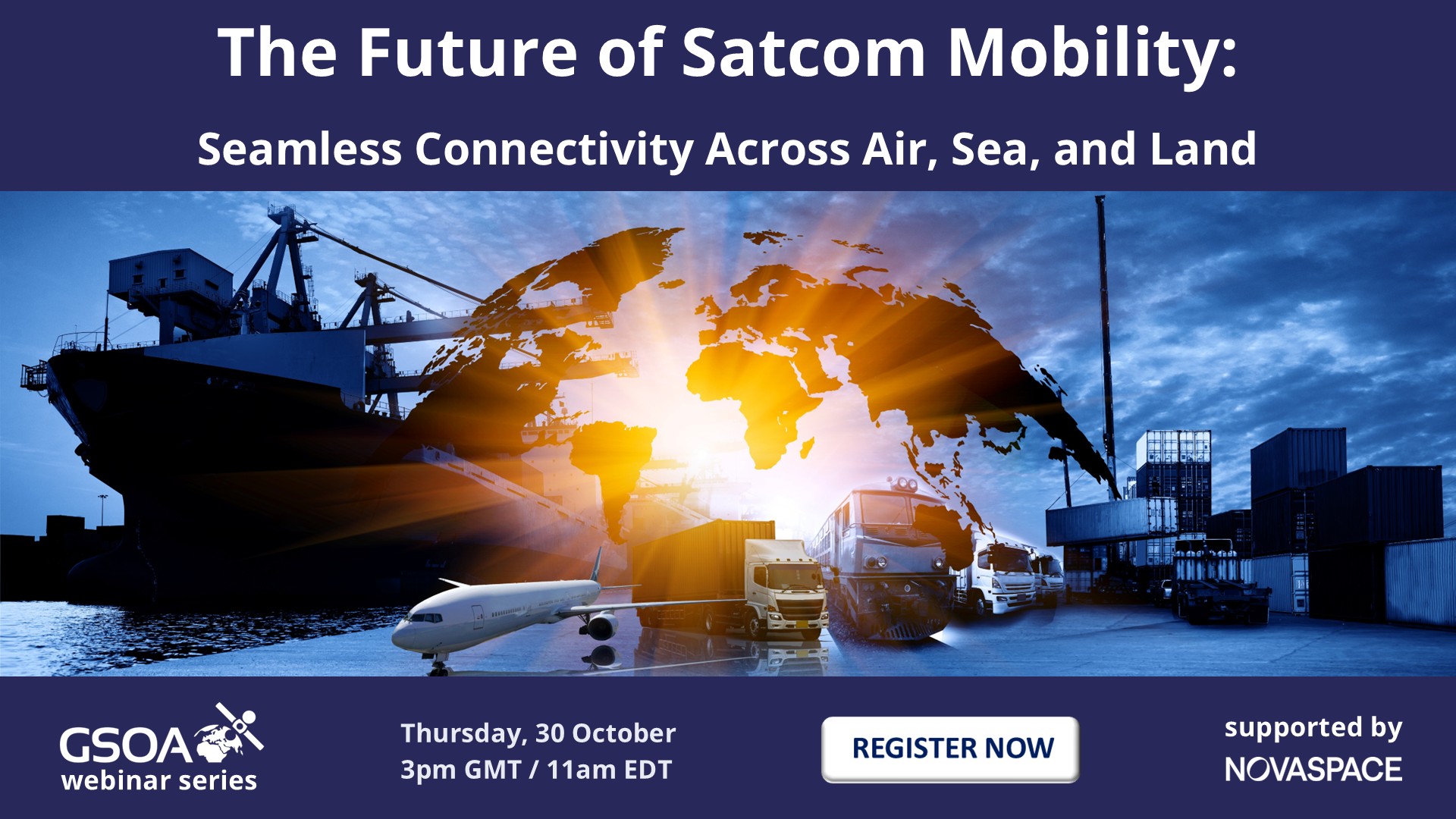 Join top industry experts for a high-energy, one-hour webinar as we dive into the rapidly evolving world of satcom mobility. We’ll explore the future of aero, maritime, and land mobility—shedding light on how satellite connectivity is powering everything from aviation and shipping to road and rail travel. Gain insights on the innovations, opportunities, and challenges shaping the future of connected mobility across all modes of transportation.